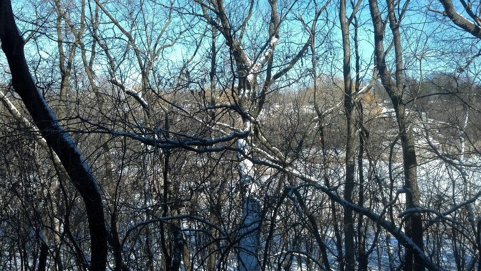This is now the view out of our living room window…and it’s very much like the view from the office/guest room and our bedroom. We have moved to an apartment with a “secluded wooded view” ~ and we love it!